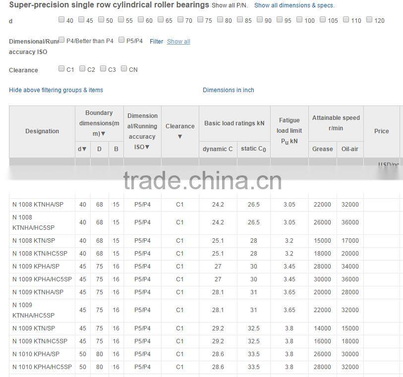 - N0000SP Super-precision single row Super-precision single row cylindrical roller bearings