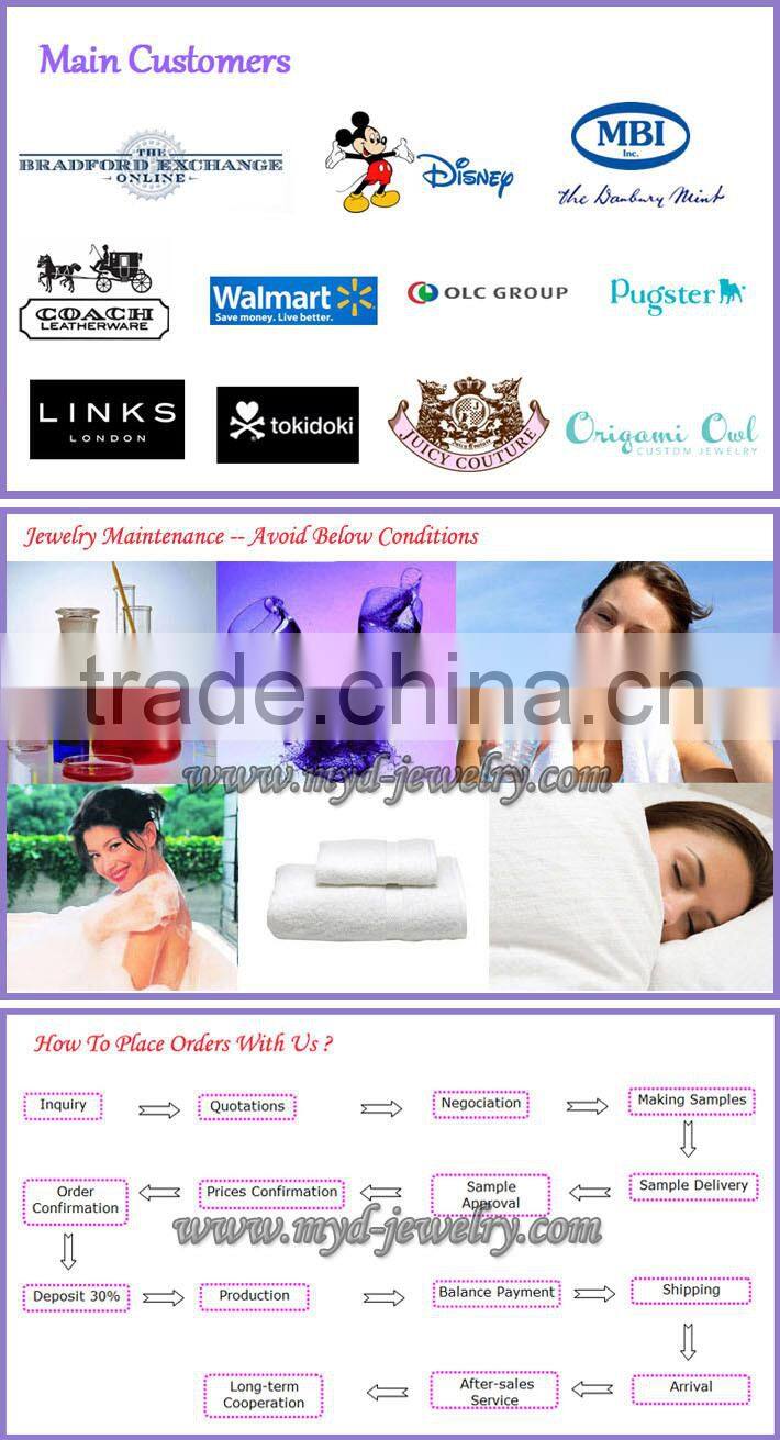 As a professional manufacturer of Italian charms bracelets for 10 years, Shenzhen MYD Jewelry Co. offers more than 1 thousand different charms for selection. You'll find a variety of charm symbols offered in three sizes (9mm, 13mm, 18mm) from categories such as family & friendship, heart & love, travel & country, flowers, alphabet, animals, religion, Christmas & Holidays, and more in enamel or with stones, as well as Italian laser charms (engraved with names, logos) and Italian photo charms ( put a picture on charm bracelets)