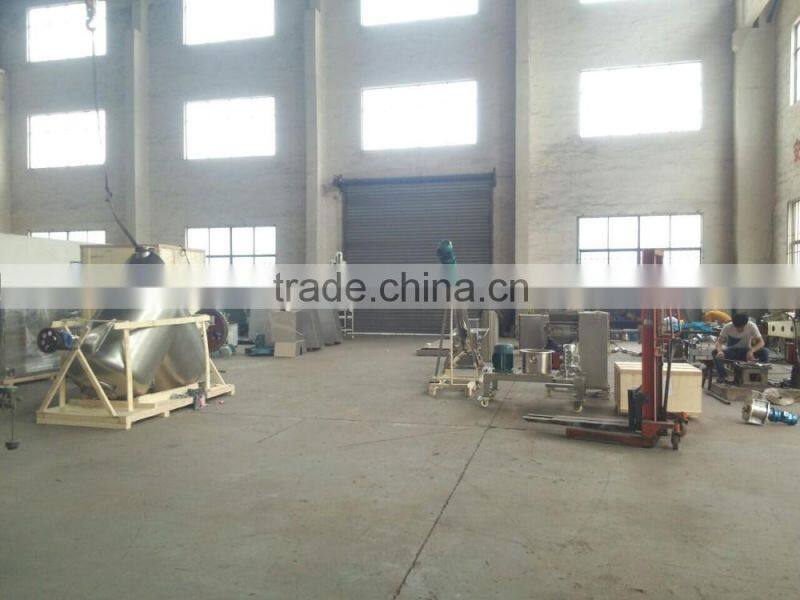 It consists of container, main shaft, and the drive transmission part. The container is U shape. The machine can be made of Carbon Steel (C model) and Stainless Steel (P model). It can be also equipped with the jacket for the container. It can heat, cool or vacuum in the jacket. The inside pressure of the jacket is less than 0.1 Mpa (The pressure can be customized). Two layers screw ribbons makes the convection of the material to achieve the mixing effect rapidly. There is a discharging valve in the middle of the container bottom. The drive parts adopt separated devices, that is, the motor is connected with reducer by the strap. Thus, It can save the space and has the overload protection.