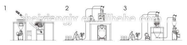 Configuration 3:feeding by vacuum conveyor,discharging into hopper,then packing;