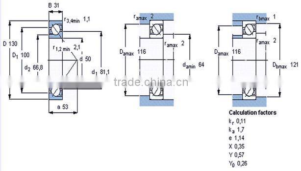 Drawing of Angular Contact Ball Bearing 7410ACM