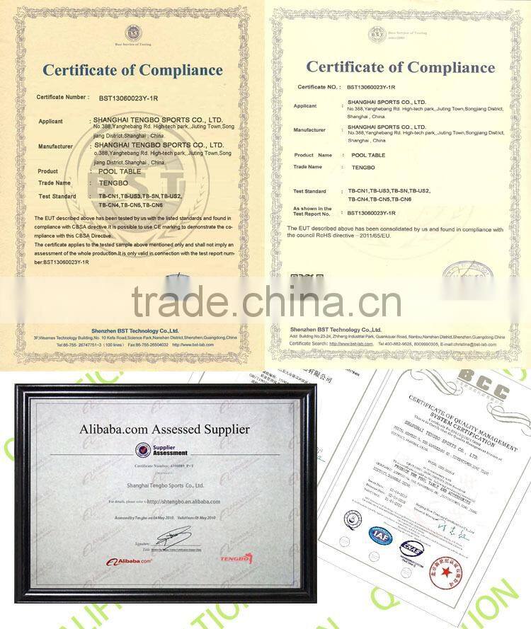 Shanghai Tengbo Sports Co.,Ltd is the professional manufacturer and exporter of the Standard Snookers, American pocket billiard tables,Chinese snooker,Russian style billiard,Carving style&Fancy style billiard,coin operated billiard and other accessories for more than 8 years in China.