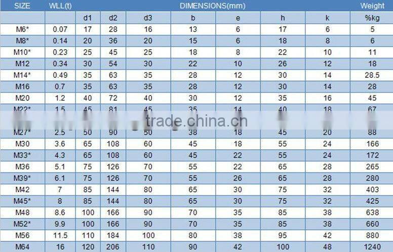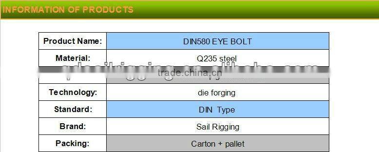 We produce DIn580 Eye Bolt, DIN 582 Eye Nut, JIS B 1168 Eye Bolt, JIS B 1169 Eye Nut, Regular Nut Eye Bolts G-291, Shoulder Nut Eye Bolts G-277, Screw Eye Bolts G-275 with high quality and better price.