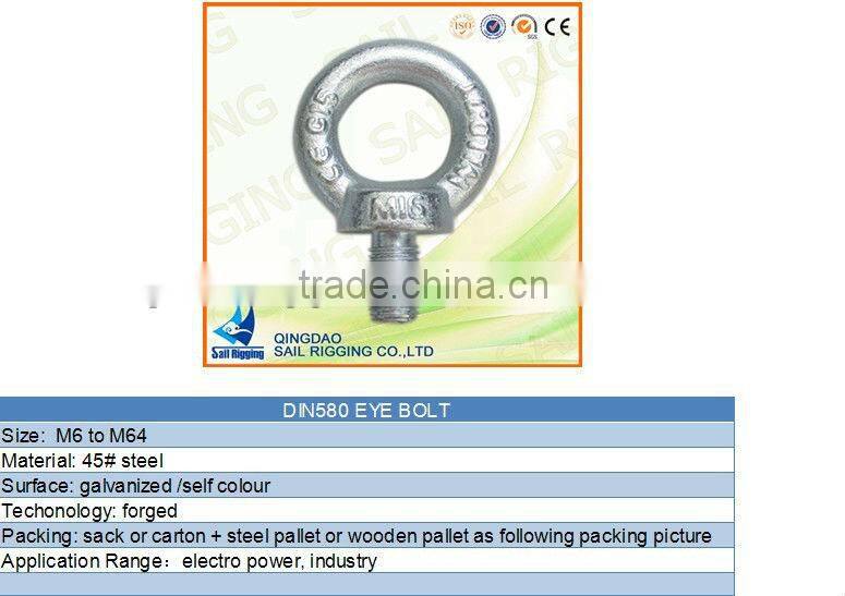China Galvanized Eye Bolts DIN580 Eye Bolt 6MMUS$ 0.1 - 100MOQ: 100 Parcels