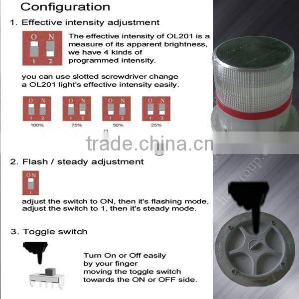 - 2)Compliance with IALA color(red,white,yellow,green,blue).Turn on at dust and turn off at dawn automatically.