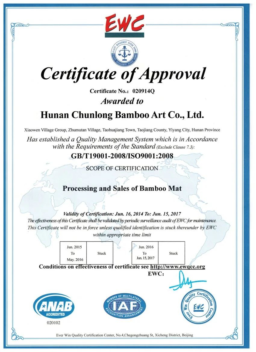 Located in the hometown of bamboo-Yiyang city, Chunlong Company has a great advantage on getting substantial high quality raw bamboo material. With 30 years production experience and the great working of all the 300 employees in our company, Chunlong group has grown into the biggest bamboo sleeping mats manufacturer in China and “Chunlong” brand has also become a famous brand in China.