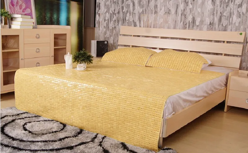 A. This sleeping mat is made of bamboo ,which is a naure plant cooling and smooth like jade.