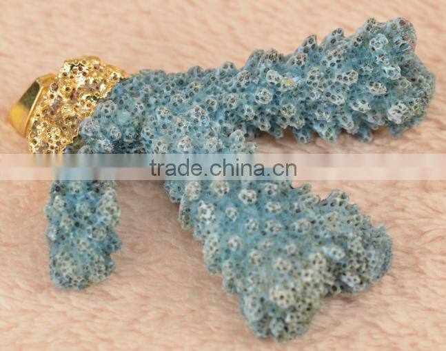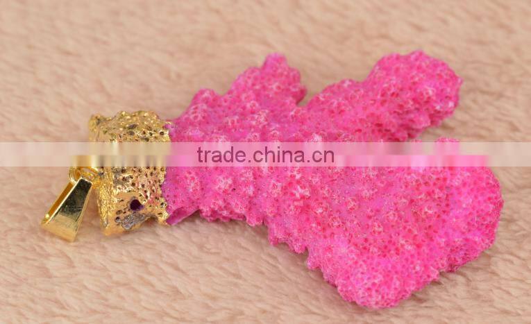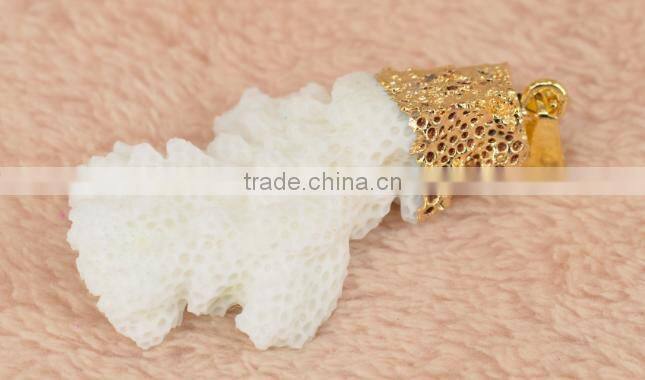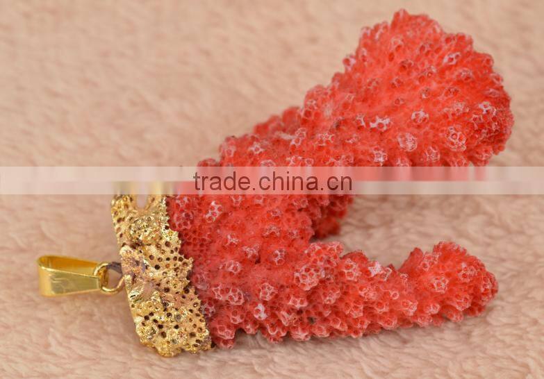 Wholesale Golden Tone Alloy Gemstone Natural coral pendant