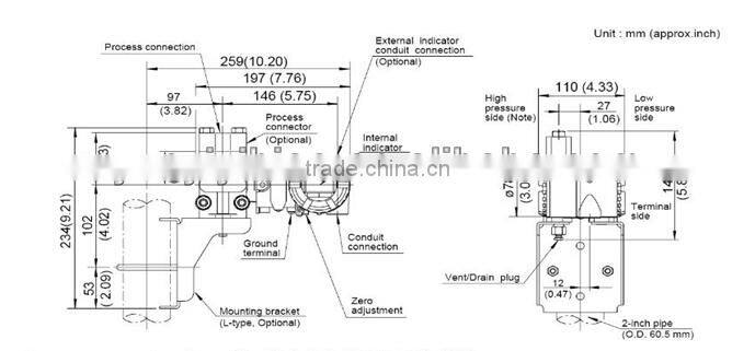 Wetted parts material | Capsule | SUS316L(Diaphragm material is Hastelloy C-276), | |||