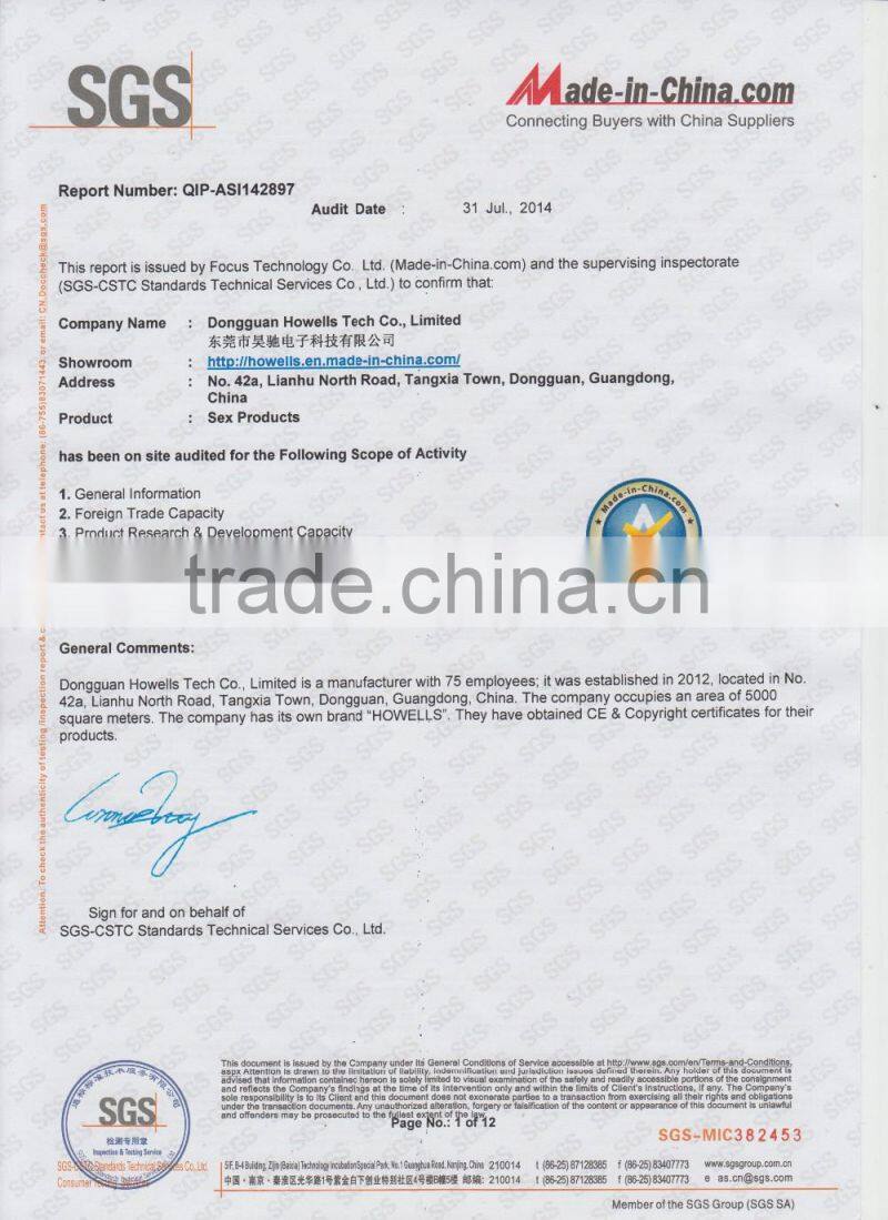 Howells Co., Limited is one of the most professional sex toy manufacturers in China. We have produced more than 160 new items in the past one year. Most items are very popular in the market, appreciated by customers.