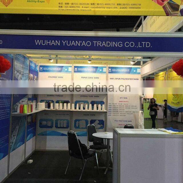 Wuhan Yuanao Trading Co., Ltd is the leading manufacture of 100% spun polyester yarn, sewing thread, DTY and poly poly core yarn in China. Which contains production factory named on Hubei Yuanchen textile Co., Ltd.