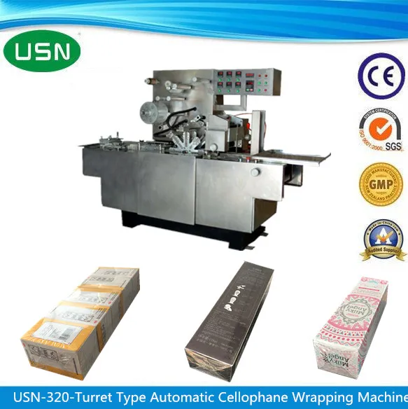 USN-350 automatic cellophane wrapping machine is especially designed for the packaging of big single boxes.