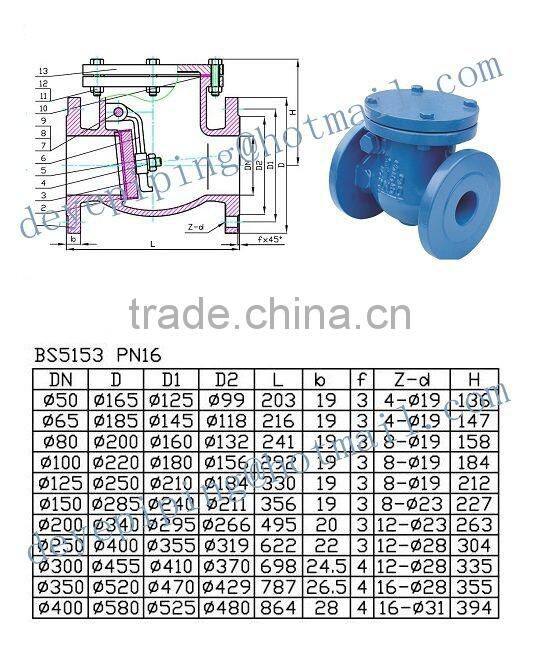 BS Standard Bronze or Brass Seal Ductile Iron Swing Check Valve