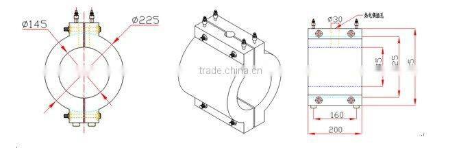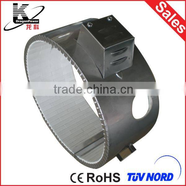 Ceramic band heater, mainly used for extrusion,casting and down-stroke machines. The operating temperature can reach up to 600 degree C. The maximum surface loading rate is 8 w/ cm2. Its advantages include fast speed of heating, high rate of heat utilization, excellent energy saving(energy consumption is reduced by 30%), high resistance of high insulation rate. It is one of the most suitable: electric heaters for plastic extrusion and injection machines, plastic hollow and blowing machines and chemical fibre moulding machines.