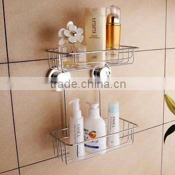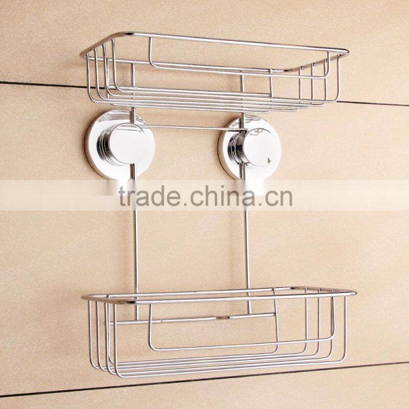 Wall Mounted Metal Bathroom Shelf Double Corner Baskets With Suction Cup