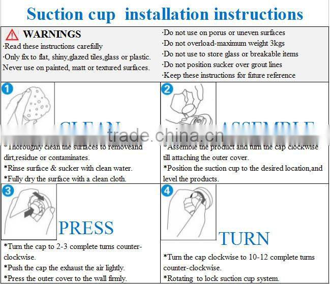 3.The materials of this produce is stainless steel international standard 304 and the sucker is made of ABS environmentally-friendly material, which providing an anti-freezing function.