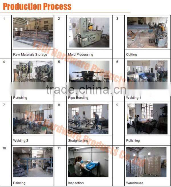 7) The bracket fix on the top of the balustrade with top saddle and can hold pipe of 38.1, 42.4, 48.3, 50.8 degree