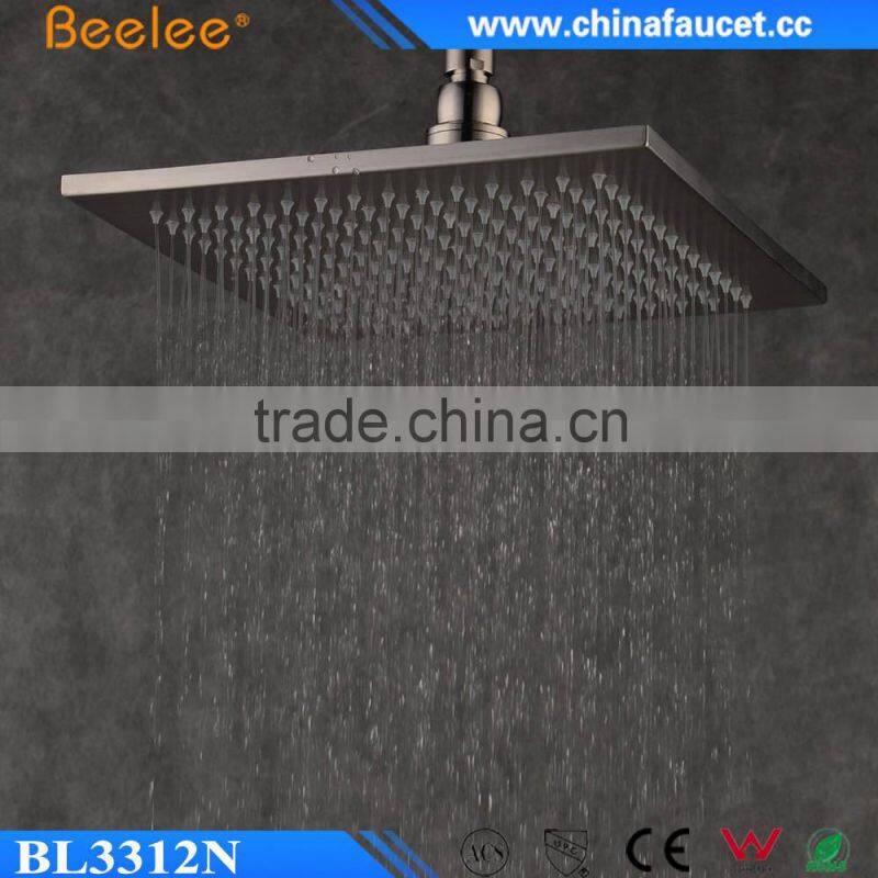 Beelee New Brushed 12 Inch Stainless Square Water Rainfall Head Shower