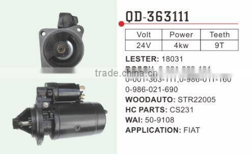 Fiat Starter Motor Lester 18031 Bosch 0-001-363-101 0-001-363-111 Woodauto STR22005 HC Parts CS231 Wai 50-9108