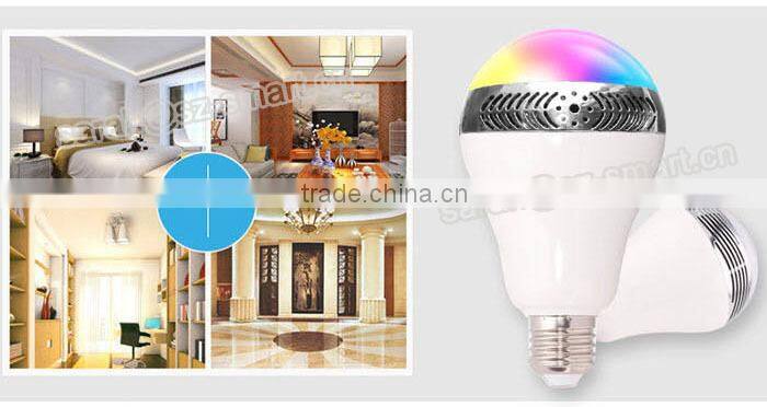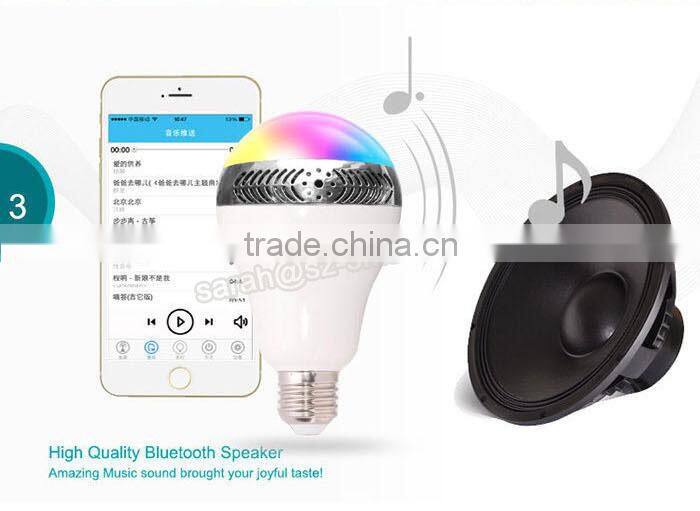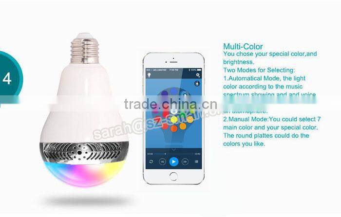 This LED music light bulb/ blue tooth music bulb speaker has a unique and exclusive two-in-one design to intelligent LED lamp with Bluetooth and speaker! The E27/E26 socket good compatibility for all lamps, can support a wide range of Bluetoothand be compatible with the devices that have the Bluetooth function. Moreover, the wireless speaker LED lamp Bluetooth supports a transmission range of up to 10 M, Bluetooth 4.0 + EDR (Enhanced Data Rate) and purity and definition of particular voice based on DSP technology. Wish you can have endless joy from the combination of light and music.