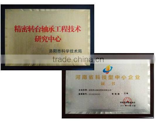 LYZC main products are HYT series rotary table bearing and crossed roller bearings, with precision of P5, P4, P2, which outer ring diameter range between ¢50mm - ¢1800mm. Our rotary table bearings cover HYT basis series, HYTS high rotational speed axial radial bearings, HYTM rotary bearing with angle measuring system, and HYZF double direction axial angular contact ball bearings. Our crossed roller bearings cover HYRB series, HYRE series, HYRU series, HYRA series, HYBH series, HYSX series, HYXR series crossed taper roller bearings.