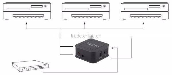 1. One way of optical fiber signal input splitter to three sets of SPDIF/TosLink signal receiving device