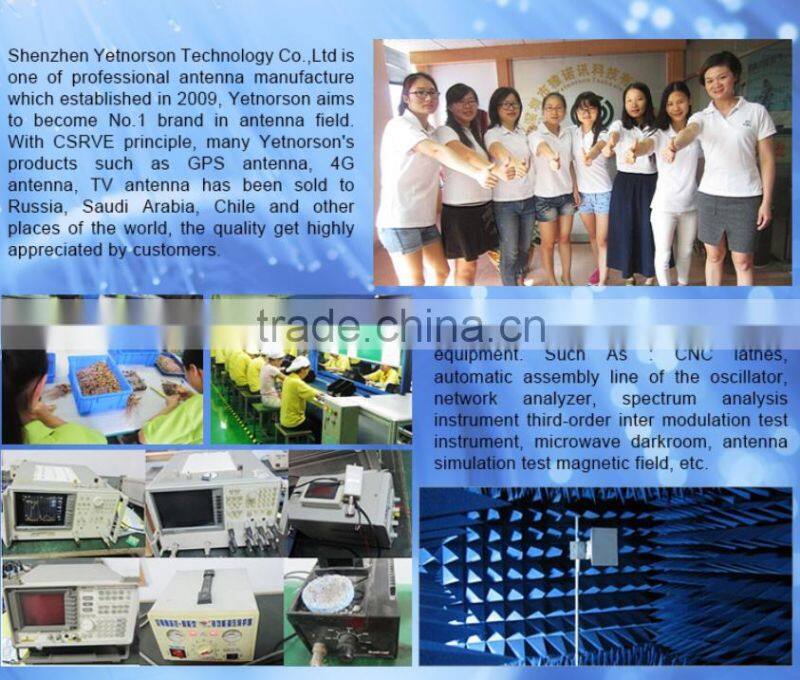 Our main products including GSM/CDMA//3G/4G antenna,2.4GHz(WIFI,WLAN)/3.5GHz(WIMAX)/5.8GHz/Spread spectrum communication antenna series(including omni antenna,grid antenna,YAGI antenna,indoor covering antenna,Ceiling mounted antenna,wall hanging antenna, panel antenna,dual polarization antenna,broadband antenna,rubber antenna,vehicle-mounted antenna,magnetic base antenna,etc.)DVB-T/DMB-T/CMMB Moving digital TV antenna,low-frequency antenna 315MHz /433MHz Wireless digital wireless monitoring/wireless antenna, GPS antenna, communications accessories: cable (feeder), connectors.