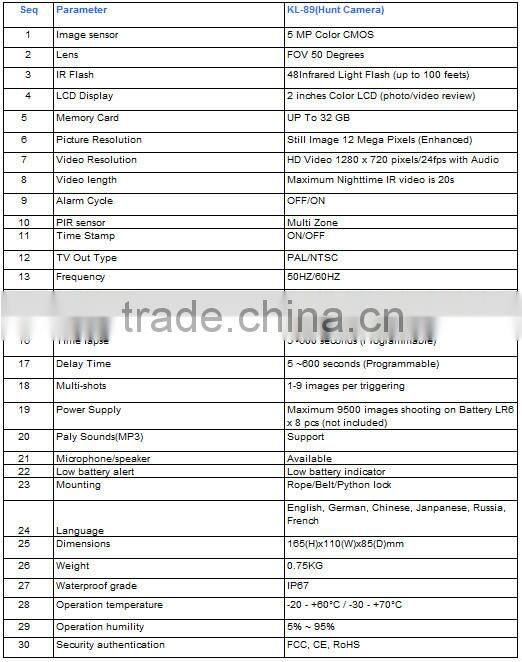 Trail Camera Specifications: