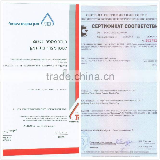 2. It belongs to high-efficicency and high technology steel products with the advantage of saving steel, high tensible strength, well elongation, low relaxation, small stress losing and good performance of anti-fatigue.