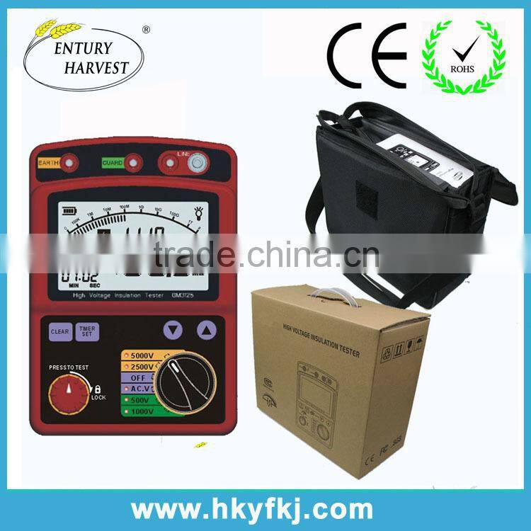 | Testing Range: 500V:0.0~999MΩ;1000V:0.0~1.99GΩ;2500V:0.0~99.9GΩ;5000V:0.0~1000GΩ |