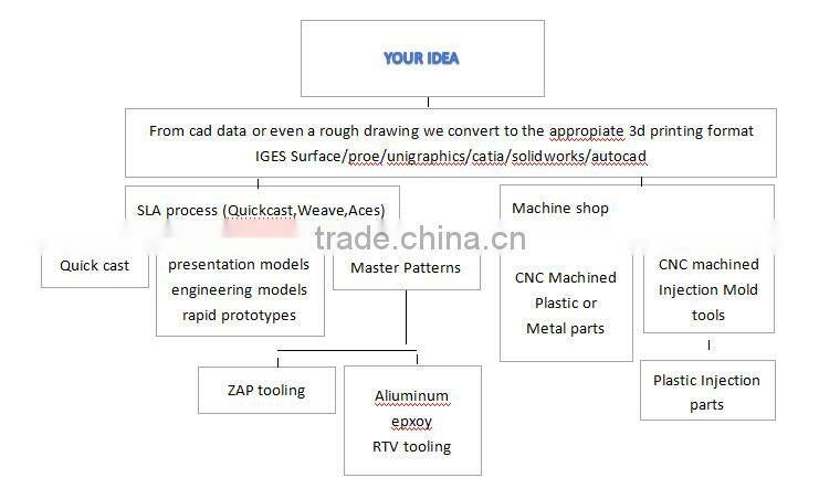 SLA(3D PRINTING) | Rapid prototyping stereolithography manufacturing gives engineers, designers, and inventors dimensionally accurate plastic parts they can hold, test, and show in a matter of days, instead of the weeks or months it used to take with conventional manufacturing. |