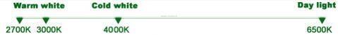 Color temperature | 2700K (Warm white) 4000K (Cool white) 6400K (Day light) |