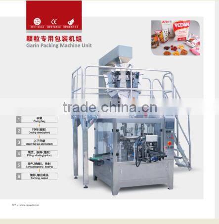 The pouch packaging machine with different dosing(such as multihead weigher ,bucket elevator ,working platform).can be suitable for the automatic packing for granular,different kinds of product with the premade flat ,folding and stand-up pouch .
