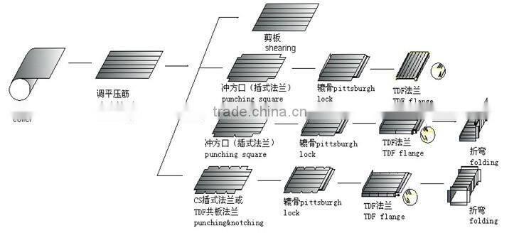 coil-straightening-beading-punching square-notching-shearing-folding-automotion pittsburgh lock forming-duplex TDF flange forming-duplex right angle lock forming (for angle iron)-folding