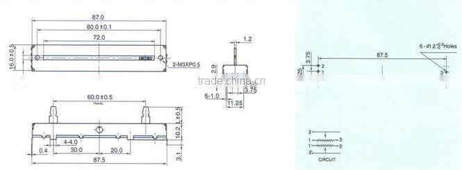 straight sliding potentiometer with 60mm travel,b10k potentiometer