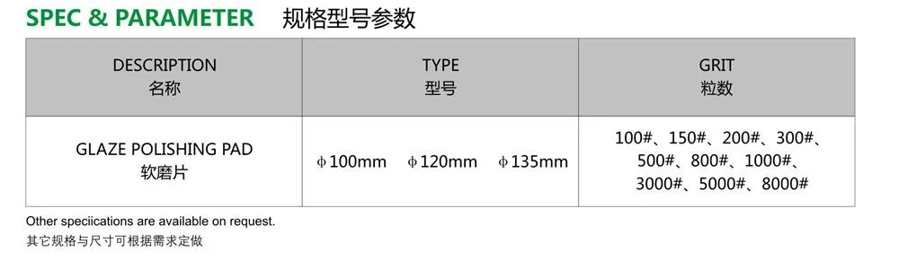 Our glaze polishing wheels are approved for their low cost, high grinding efficiency, high gloss and no grinding scratches.