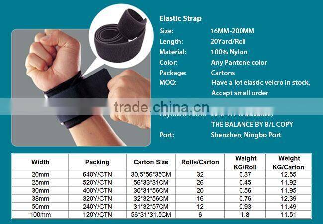 As we are a professional manufacturer of elastic hook loop strap, our price is competitice. Reasonable price and timely service, that is why it is popular with the market of Europe, USA, the Middle East, the Costa Rica, Peru, Japan, UAE, Australia, etc .