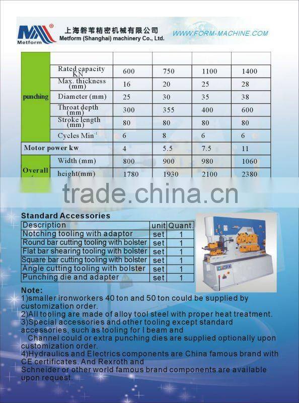 Metform Model Q35Y-12, Q35Y-14, Q35Y-16, Q35Y-20, Q35Y-25 and Q35Y-30 are available for cutting different steel size.
