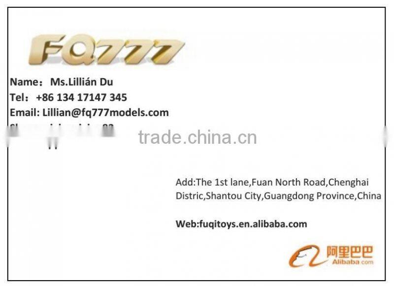 FQ MODEL FACTORY is located in the Chinese Toys Town -- Chenghai, Shantou City, Guangdong Province. It has excellent traffic system and nice weather. Chenghai is the ideal city for pursuing toy business, no matter where you are from.Our factory was founded in 1997 and it specializes in designing, manufacturing and selling toys. We currently focus on sales of RC helicopters and have over 10 toy factories.So we can offer the direct and the cheapest price.we guarantee that the pictures are show as item itself,100% new items,professional checking,soft good packing,fast shipping,trackable website,excellent after sale service.