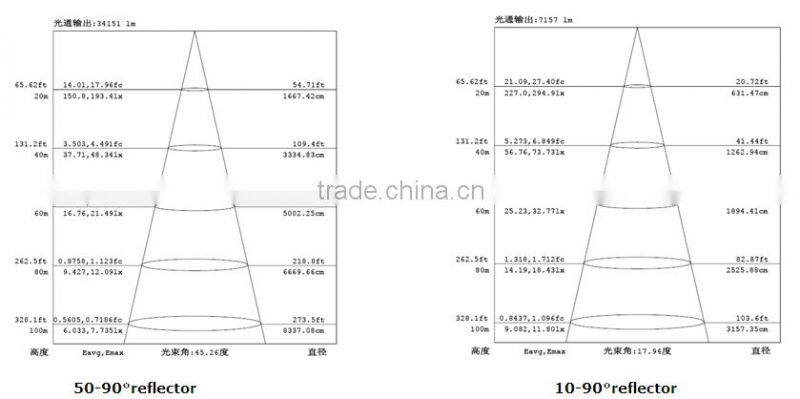 | LED Quantity | Total 440pcs chip | Average Luminance | Beam Angle | Height 20M | Height 40M | Height 60M |