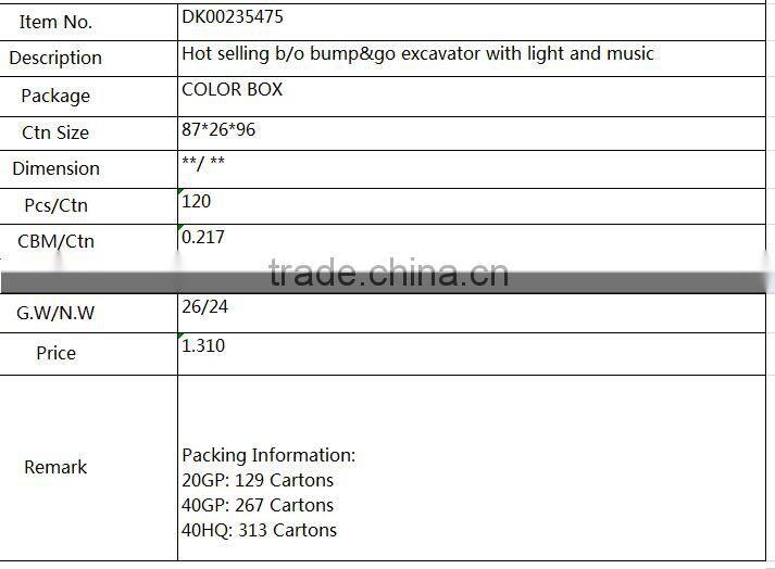 Hot Selling B/o Bump&go Excavator With Light and Music