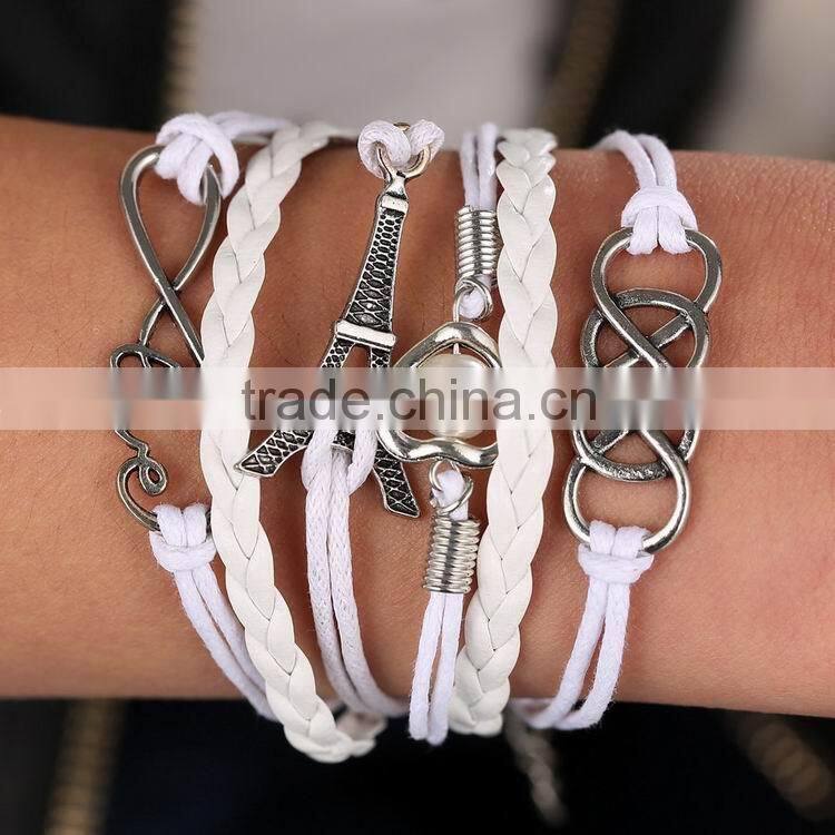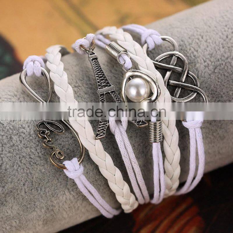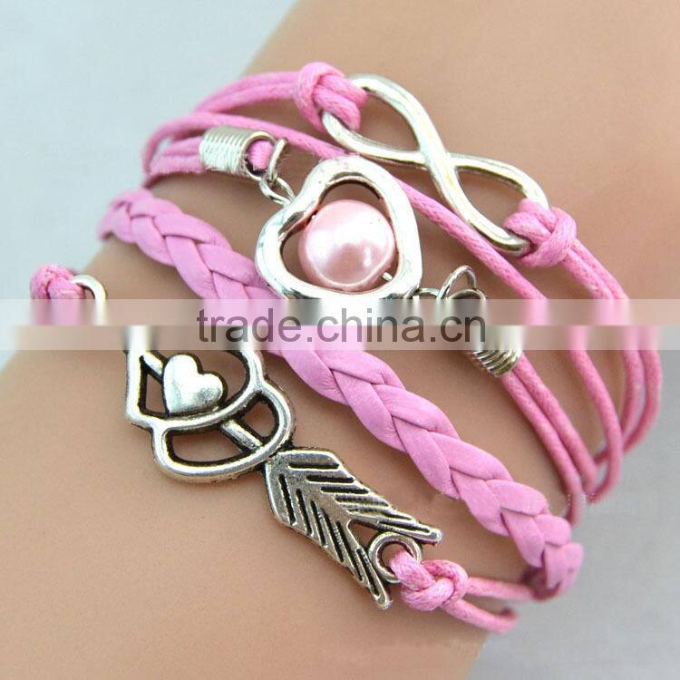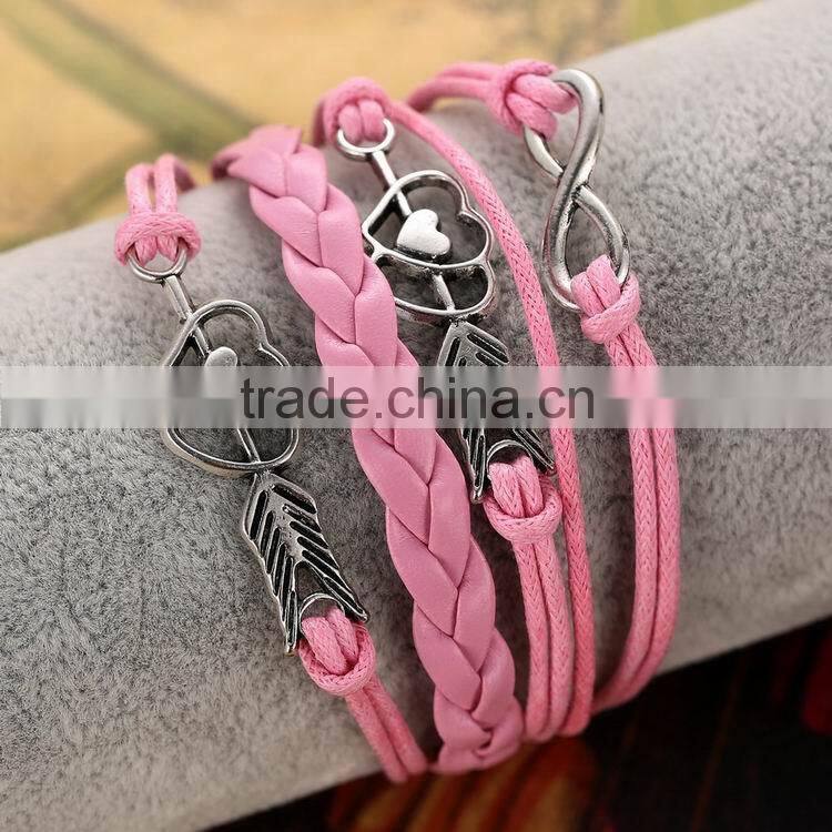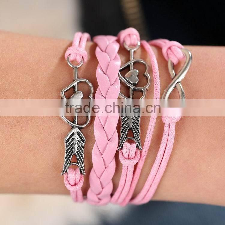 Heart Shape Alloy With Selveral Rope Weave Woven Bracelet