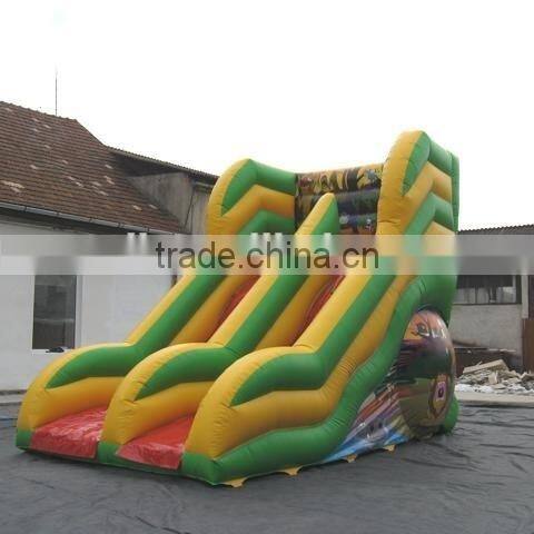 The color for inflatable slide is also can be spoken, Conventional color has red, yellow, shallow blue, dark blue, purple, white, black, gray, dark green, light green. Conventional material for inflatable slide is 0.55mm, 0.48mm, 0.45/0.9mm pvc tarpaulin.