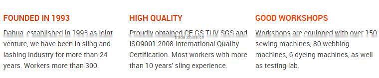 Nanjing Dahua, founded in 1993, is a professional manufacturer of webbing sling, round sling, ratchet lashing.