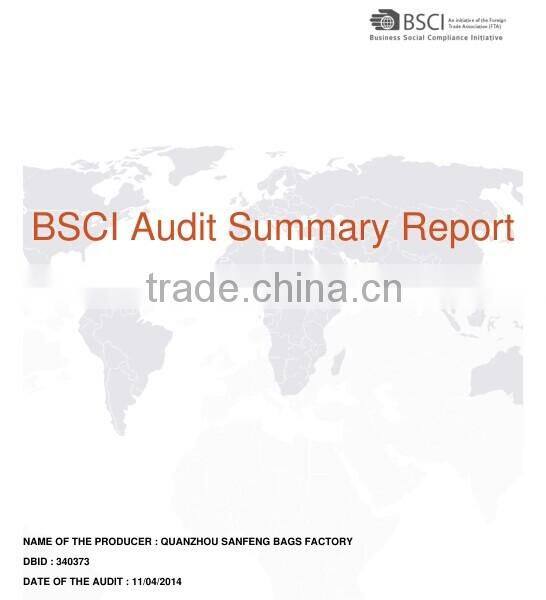1. You are choosing a professional bags manufacturer: A. After order is confirmed, we have a meeting with the main people who work for workshop before production, investigate all the workmanship and technical details, make sure all the details are under control. E. Final products quality control F. Final inspection while packing up all the goods. If there is no other problem at this stage, our QC will issue the inspection report and release for shipping 2. You are choosing very good service: C. Production time: 35-45 days (Depends on the Qty) upon receiving the deposit 3. You are choosing high standard products: