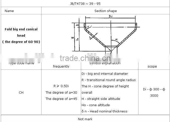mild steel and stainless steel tank end dished conical head for pressure tank