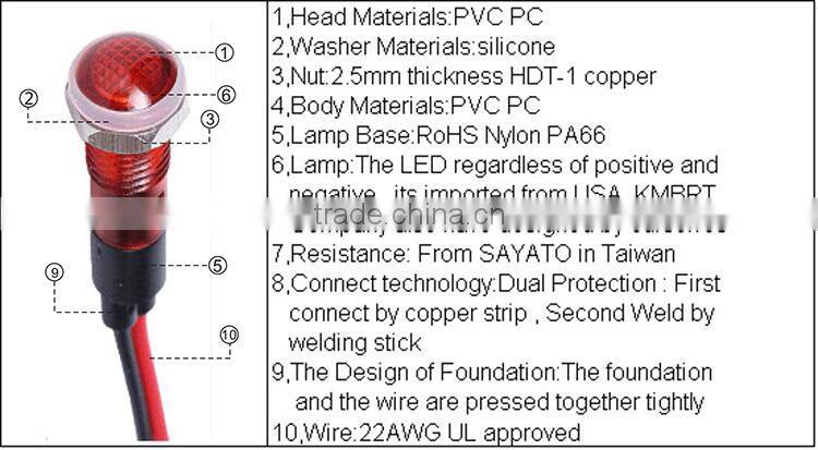 Plastic Waterproof 8mm 230v Yellow Blue Red Green White Led Motorcycle Signal Light