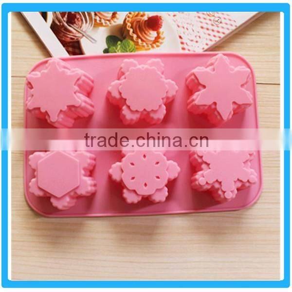 6 Cubes Snowflake Shape Mold Silicone Soap Mold Pink Cake DIY Mold