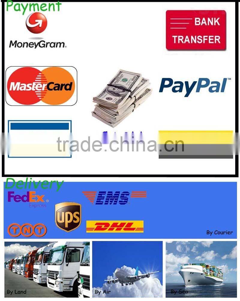 Payment: T/T, Western Union, PayPal; 30% deposits; 70% balance before delivery.