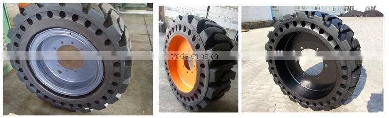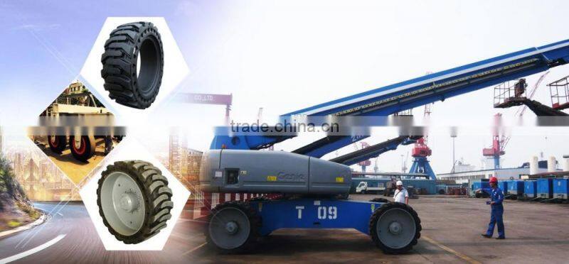 Our main products: solid rubber tires for pneumatic,solid rubber OTR tires,press-on solid rubber tire,solid rubber tire for lifting platformfor,Rims.